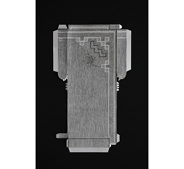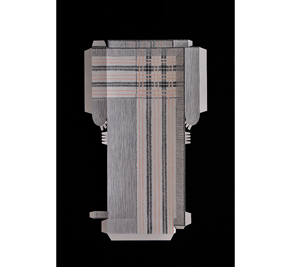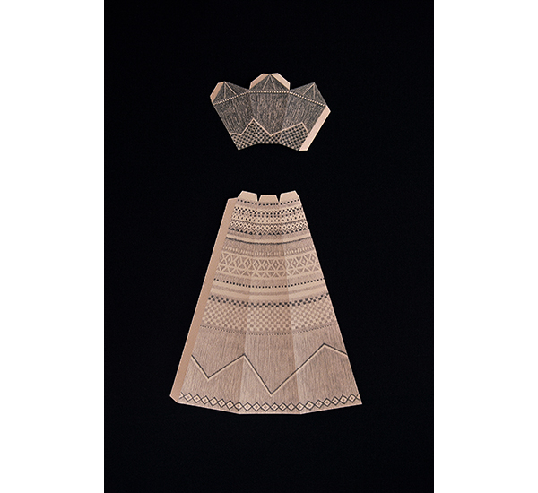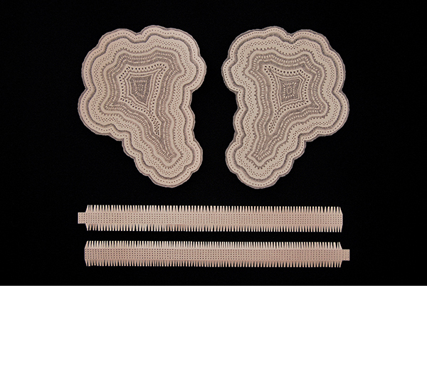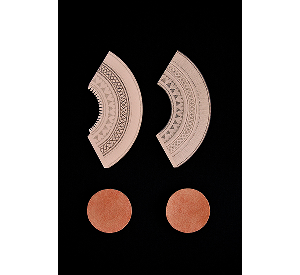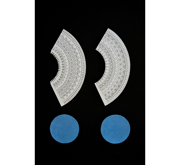 Mnemosyne - Über Objekte Muster ..... 2015 Fotografie 30 x 40 cm Schnittmuster-Objekte: Bleistift und Buntstift auf Papier, cut-out, Lederimitat >